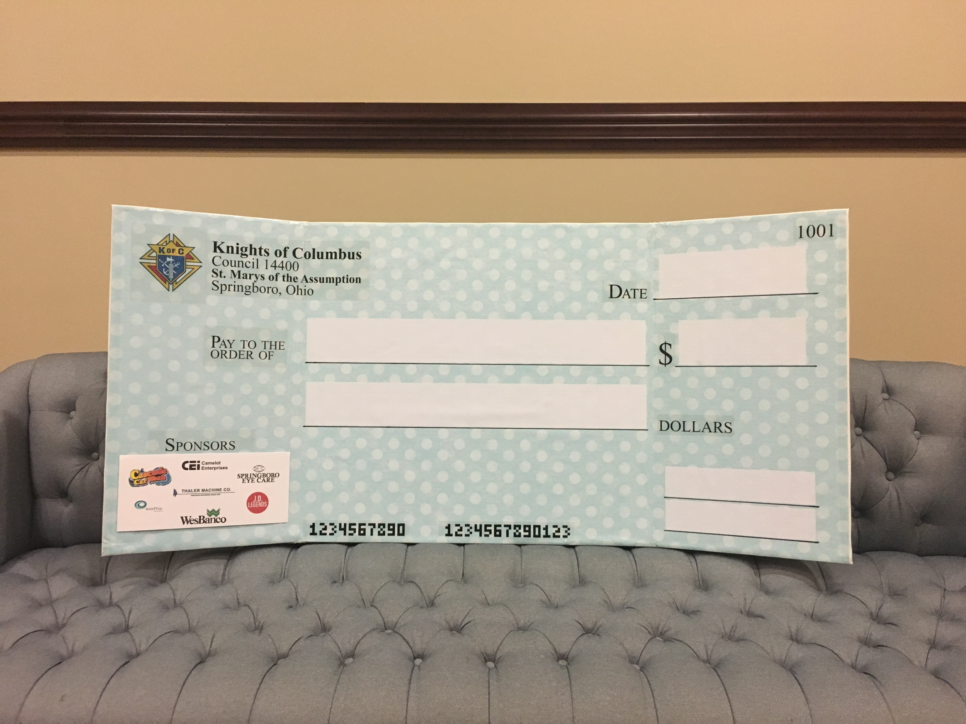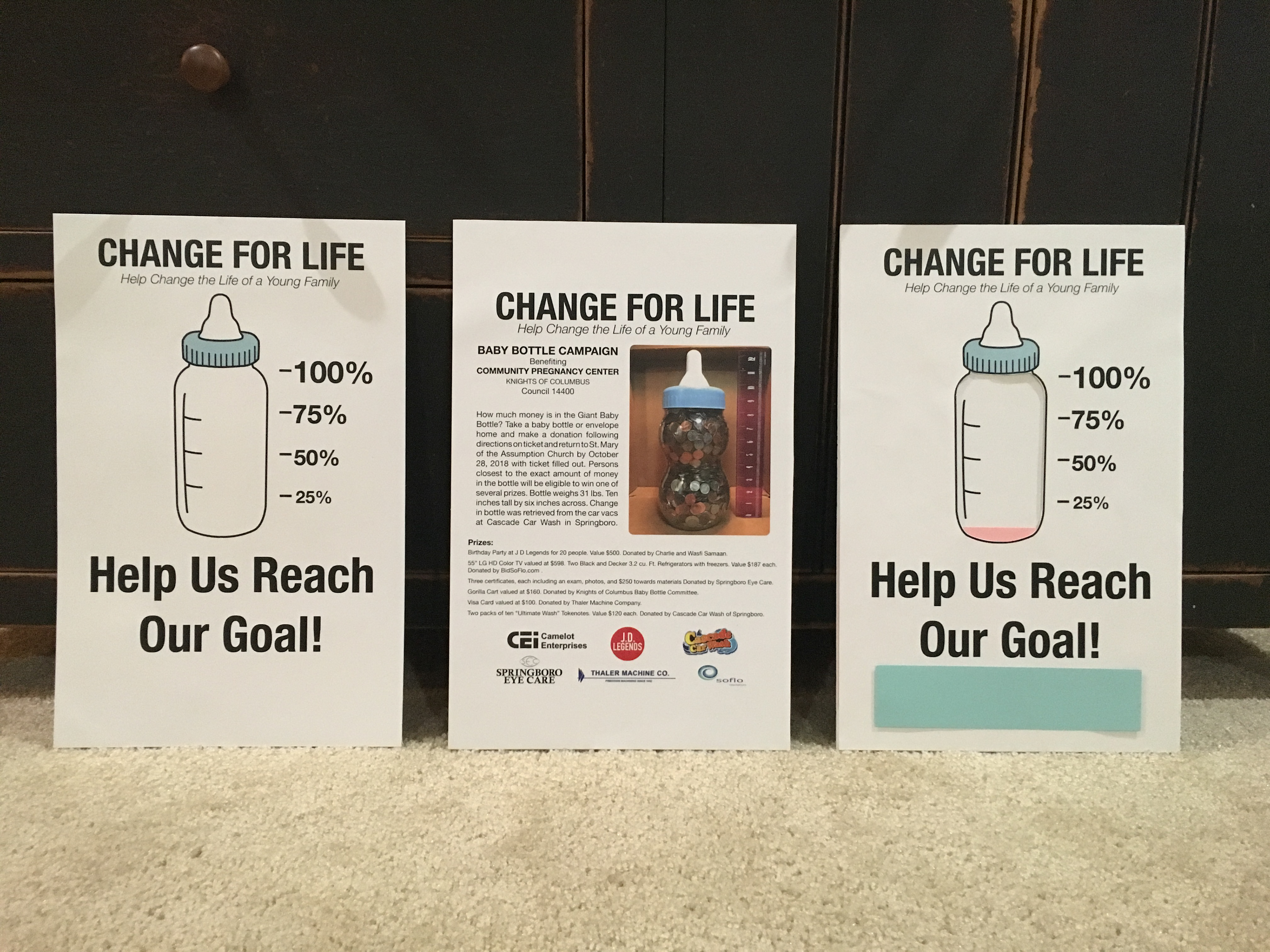 A campaign to collect money for the Community Pregnancy Center to help new parents with supplies. Created flyers, tabletop signage, progress thermometer, and presentation check.