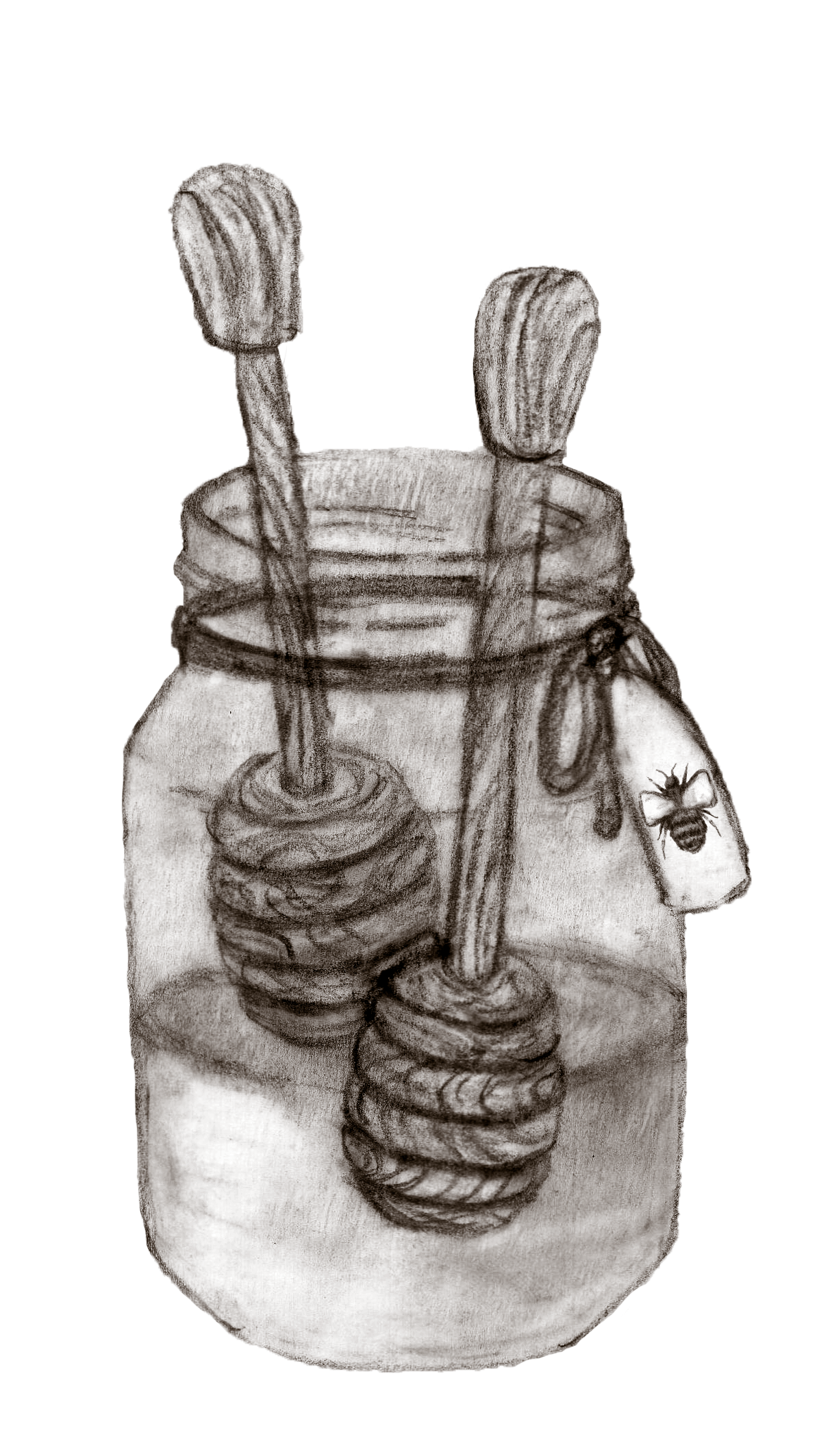 Hand drawn images front and back labels.