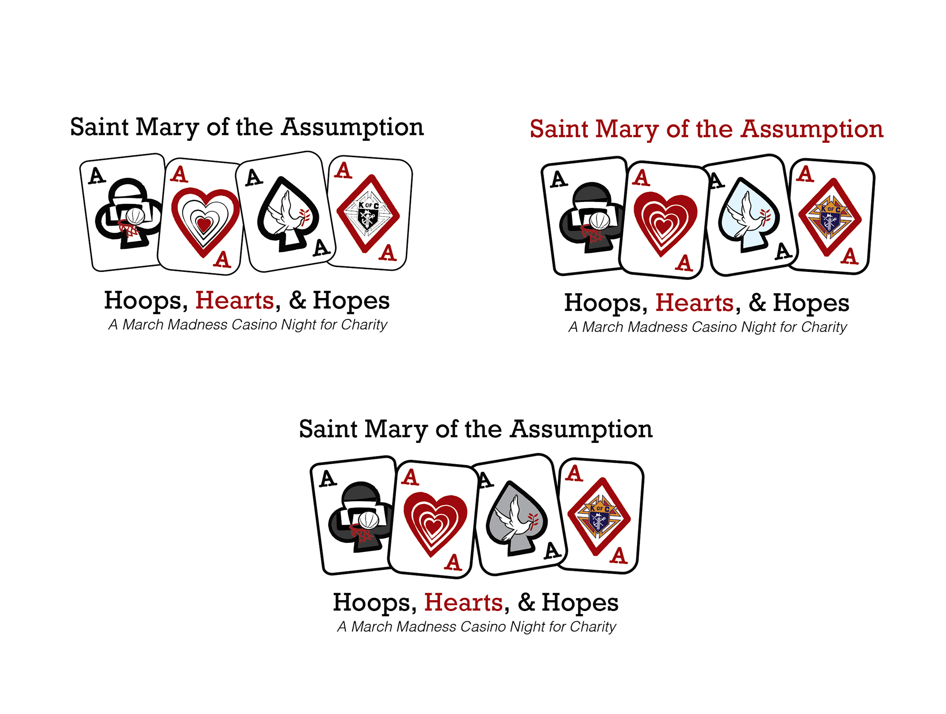 Logo for the upcoming March Madness Casino Night at St. Mary of the Assumption Church. Image will be applied to tickets, program, and other materials.